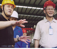 時(shí)任廣州市黃埔區(qū)區(qū)委書記現(xiàn)任廣州市人大常委會(huì)副主任謝寶懷(前左)來(lái)我工廠視察