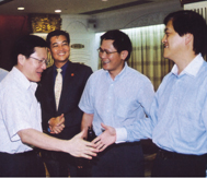 時(shí)任廣州市黃埔區(qū)區(qū)委書記現(xiàn)任廣州市人大常委會(huì)副主任謝寶懷(前左)來(lái)我工廠視察